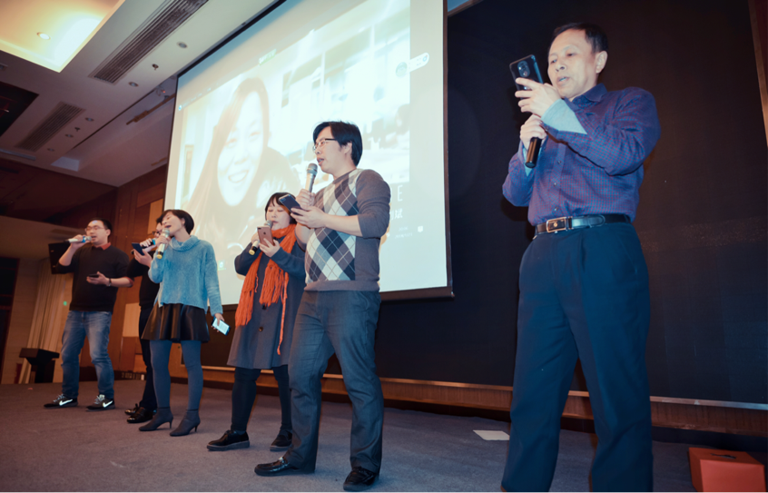 載歌載舞的精彩演出,豐盛的美酒佳肴,熱鬧非凡的游戲競猜,扣人心弦的抽獎活動無不一一掀起整場晚會的陣陣熱潮。“因為我們是一家人,相親相愛的一家人......”,各部門經(jīng)理齊聲合唱《相親相愛一家人》,熒幕上是所有員工對2018年的期待與愿望,如此和諧,如此溫暖。